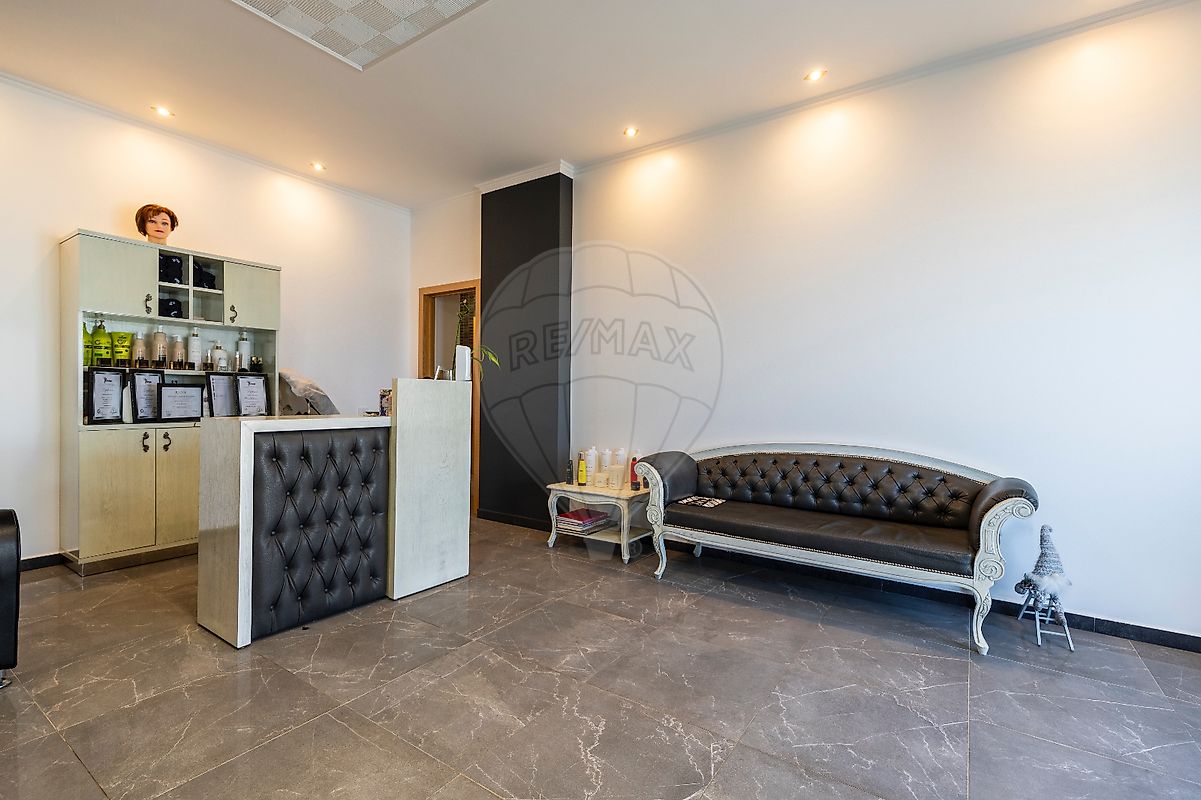 R/C: garagem, com portão automático, para mais de 5 carros, casa de banho, e divisão que atualmente funciona como salão de estética.