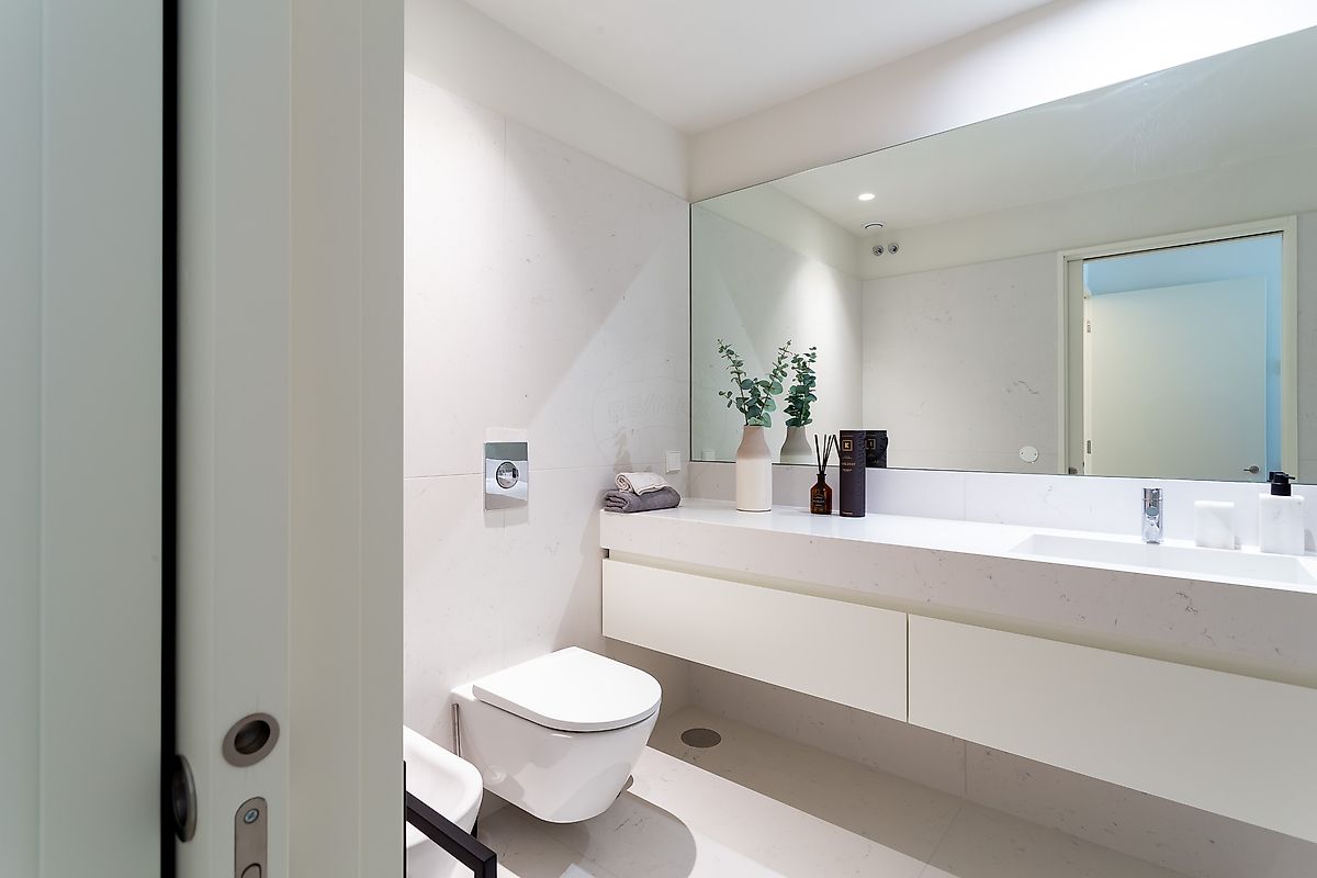 Trata-se de um elegante apartamento T3 composto por duas suites e uma master suite, garantindo o máximo de privacidade e bem-estar para todos os residentes. A master suite, com generosos 17,6 m², integra uma casa de banho privativa e varanda, proporcionando um ambiente exclusivo e acolhedor. As restantes suites, com 14,7 m² e 12,2 m², beneficiam também de excelentes áreas e acesso a varandas, contando com casas de banho completas que asseguram total conforto.