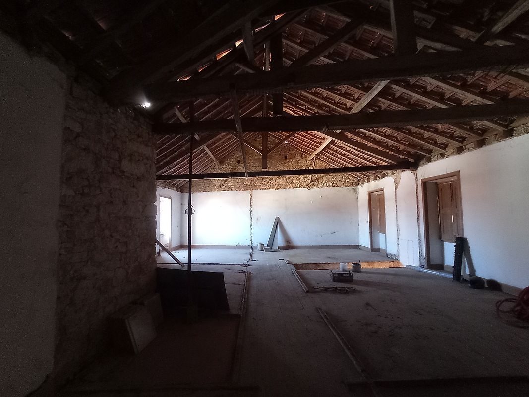 Com um terreno de 375 m², há bastante espaço, tanto dentro como fora, incluindo um logradouro de 200 m², que pode ser transformado em jardim ou zona de lazer. O primeiro andar é um sotão amplo, mas originalmente possuía 4 quartos, uma sala, uma casa de banho e uma cozinha, o que sugere boas possibilidades de renovação.
