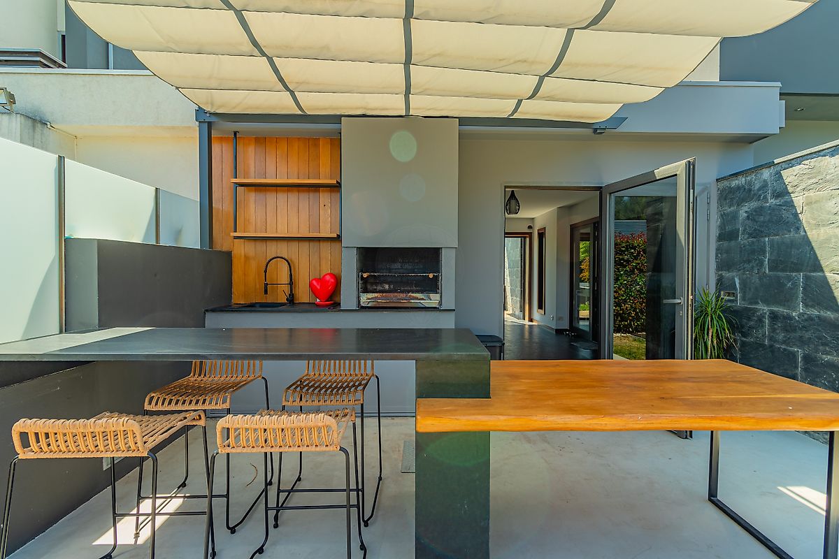 - Lazer e Entretenimento: O exterior da moradia é um verdadeiro espaço de lazer, com uma piscina aquecida, jardim, churrasqueira, salão de festas com WC de serviço, ideal para receber convidados. Além disso, a propriedade conta com um ginásio totalmente equipado.