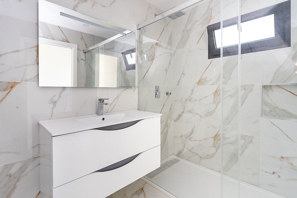 As casas de banho foram pensadas para proporcionar uma experiência de puro luxo, com revestimentos em cerâmicas Margrés Love. Cada peça foi escolhida para transformar o seu momento de relaxamento em um verdadeiro ritual de bem-estar, num ambiente onde a sofisticação e o conforto andam de mãos dadas.
