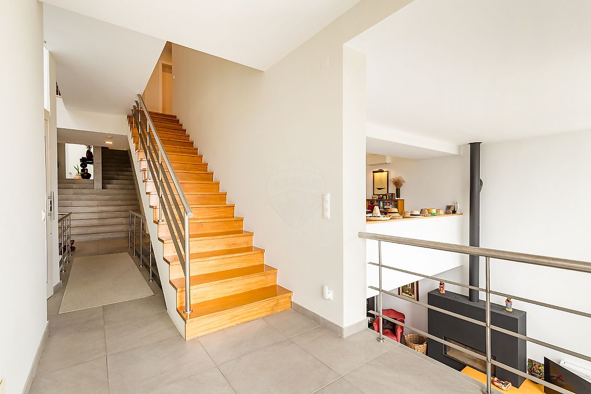 Com cinco quartos luxuosos e quatro casas de banho, esta moradia proporciona um ambiente de conforto e requinte para toda a família. A sala principal, completa com uma acolhedora lareira, é o espaço perfeito para relaxar e entreter.