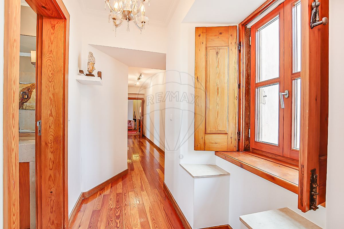 Apartment in an 18th-century building, transformed into a modern residential complex where the original layout was preserved: the Palácio Vila Flor development. The building's facade features Portuguese tiles • This charming apartment has two bedrooms, a closet, and an additional room that can be used as a third bedroom, dining room, or office. All rooms have windows providing natural lighting with panoramic views of the Tagus River • The windows have double glazing, frames made of Riga wood, and Casquinha wood shutters, which were recovered from the original ones, contributing to thermal and acoustic insulation • The living room and bedrooms have Riga wood flooring • The flooring and the kitchen and bathroom countertops, are made of Lioz stone • The door is reinforced • It is located on the second floor in a completely rebuilt building in 2005, with an elevator • Privileged location in the riverside area, right in front of the cruise ship terminal • A 5-minute walk from the Praça do Comércio metro station and downtown Lisbon • A 10-minute walk from the Santa Apolónia train and metro station • Possibility of monthly fee with various options in a covered parking facility, available 24 hours a day, just 100 meters away.