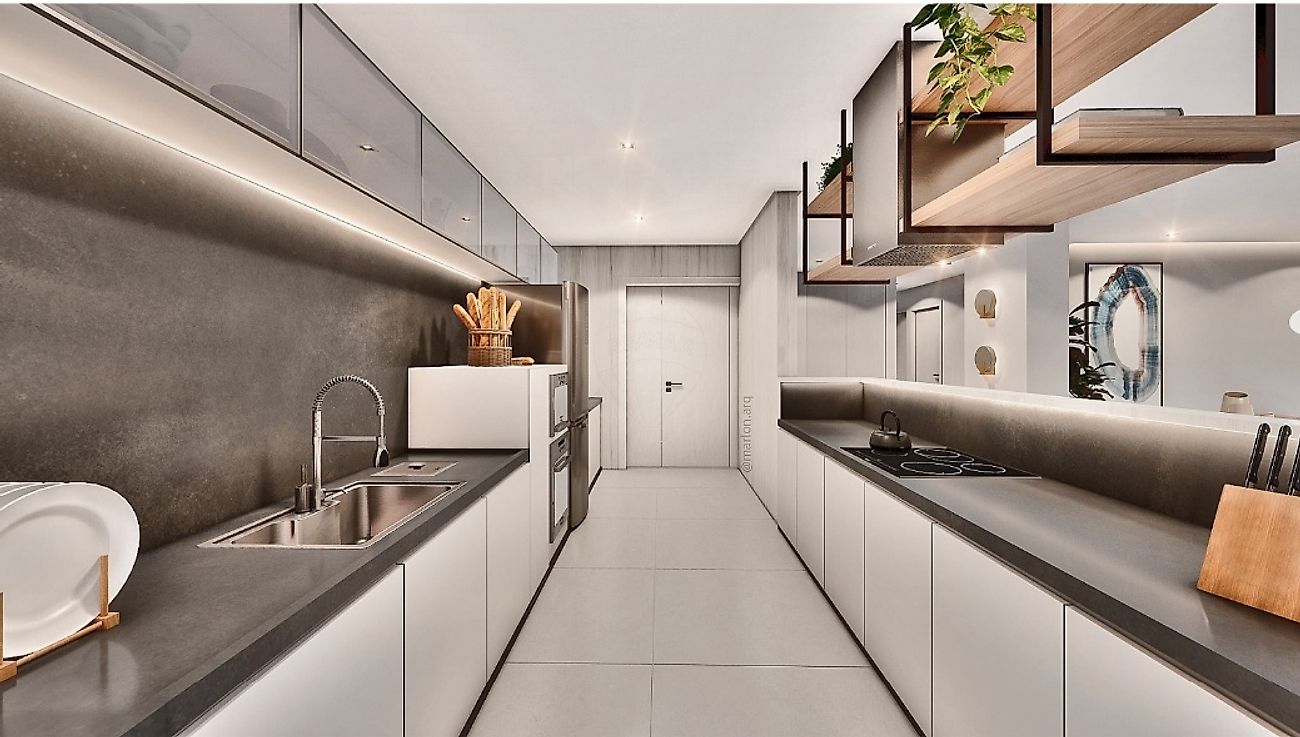 - Partially open-plan kitchen with 13,6 m2, air conditioning, ceramic tiled floor and ceramic tiled walls: