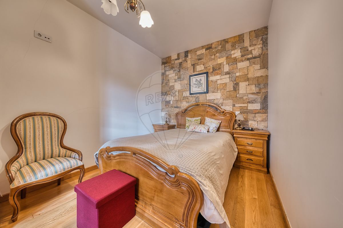 Quartos e casa de banho, revestidos com piso de soalho em madeira de carvalho.