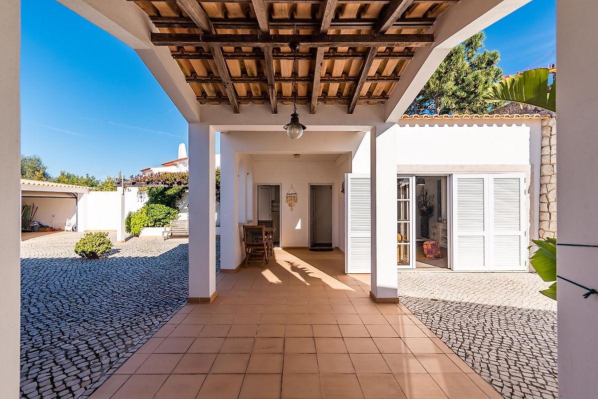 O exterior é igualmente encantador, com um jardim paisagístico cuidadosamente mantido, que inclui uma piscina com deck em madeira, várias áreas de estar, e um espaço especial para crianças, com uma casa em madeira e escorrega que dá diretamente para a piscina. O espaço de lazer é completado por uma zona de refeições coberta, barbecue, telheiro para jogos e arrumos, além de estacionamento.