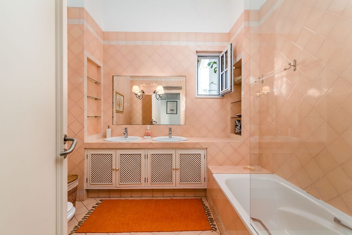 Com uma qualidade de construção superior, a moradia foi edificada com materiais de alta qualidade e mantém-se em excelente estado de conservação. No piso térreo, a área social, com ligação direta ao jardim, destaca-se pela amplitude e luminosidade, proporcionando um ambiente acolhedor e sofisticado. A sala, com uma área total de 65 m², é a ideal para receber, enquanto a cozinha, totalmente equipada, oferece 16 m² de funcionalidade e estilo. Este piso conta ainda com três quartos confortáveis e dois WC completos.