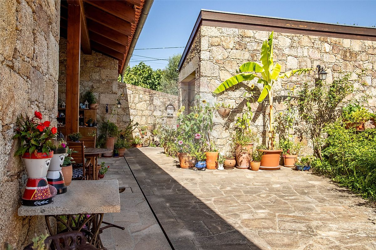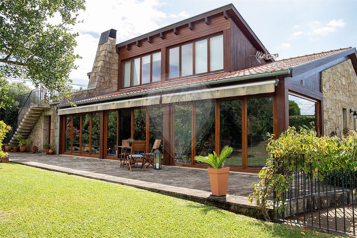Com uma arquitetura tradicional em granito limiano e detalhes em madeira natural, esta moradia combina conforto moderno com o encanto rústico da vida rural.