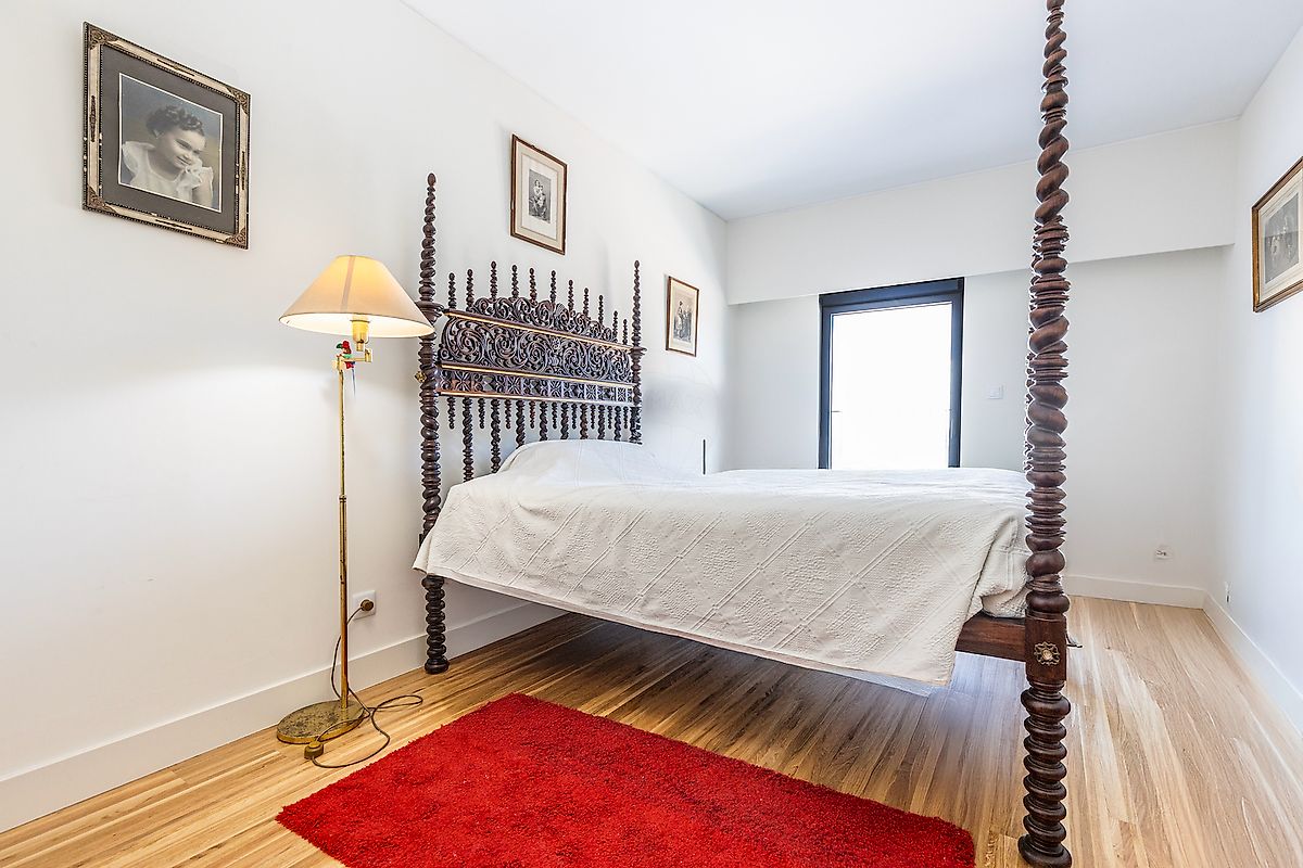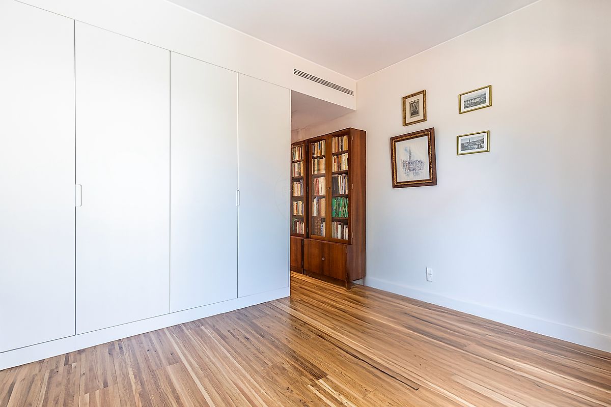 A área privada oferece uma suíte com closet, dois quartos com roupeiros embutidos e duas casas de banho, assegurando conforto e organização para toda a família. A luz natural, abundante e suave, penetra pelas janelas de grandes dimensões e valoriza cada divisão, criando uma atmosfera acolhedora e luminosa.